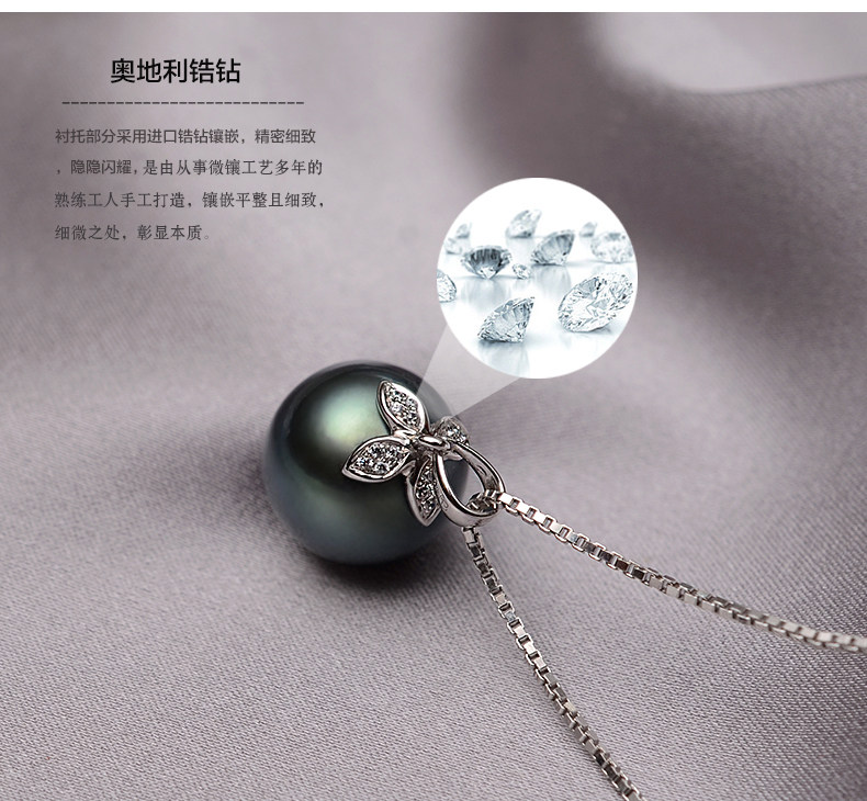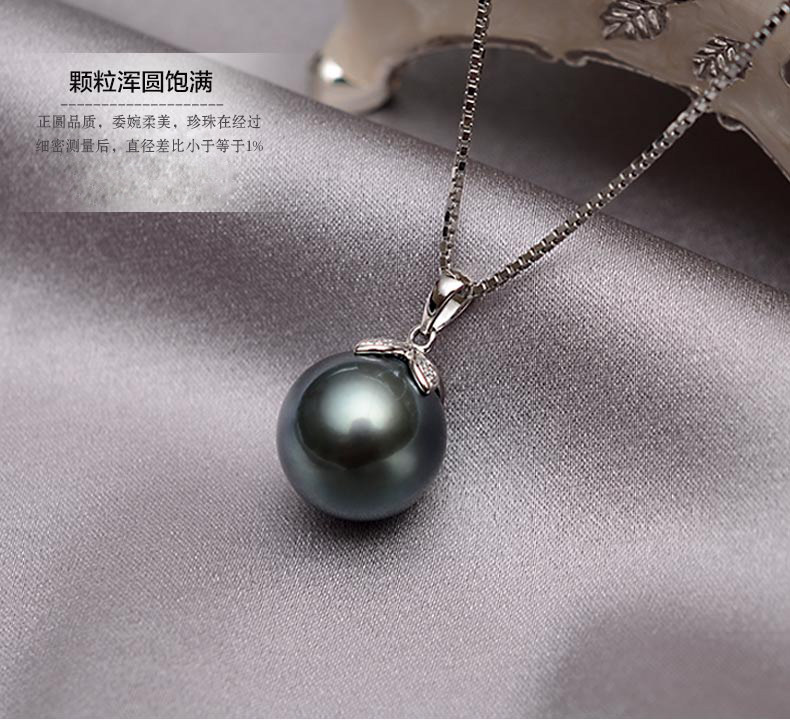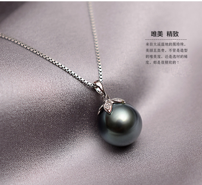Four Leaves Grass 925 Pure Silver Seawater Pearl Powder Necklace Big Creek Black Pearl Powder Pendant Positive Round Glare Send Girlfriend