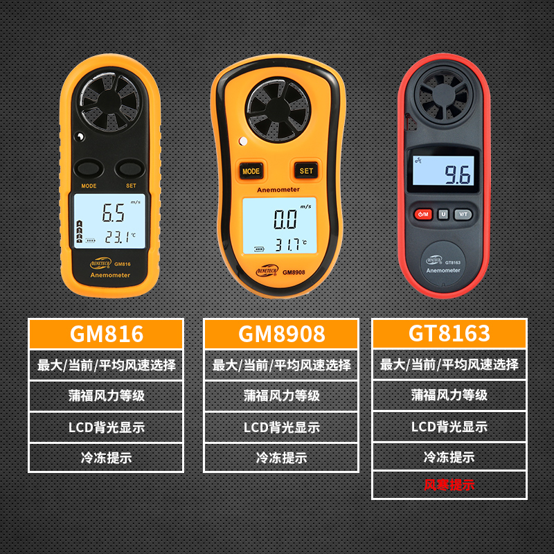 Biaozhi GM816 Mini Digital Anemometer Anemometer Anemometer Wind Speed Wind Temperature Measuring Instrument Tester Wind Meter