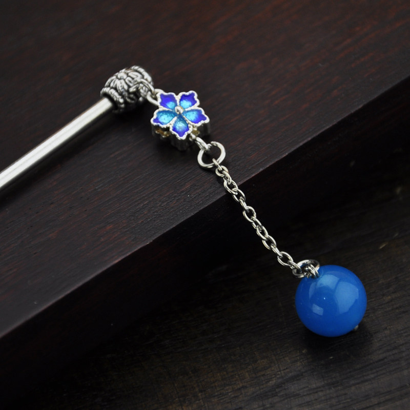 Retro Jingtai Blue jade medullary flow Suclassical steps with long hair and hairpins Female national wind Chinese wind original handmade hair accessories