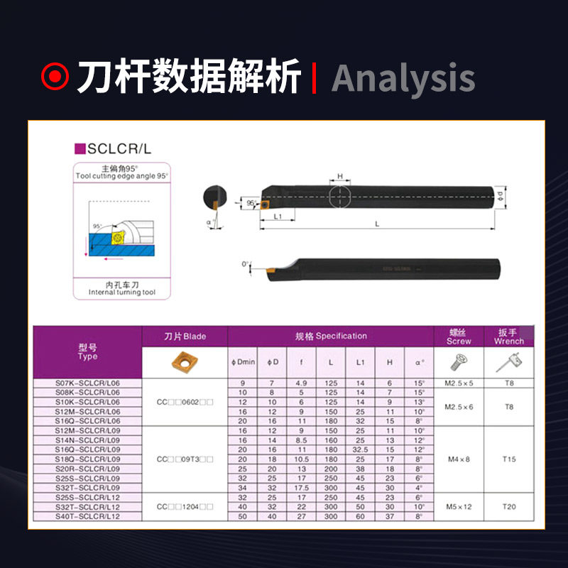 Numerical Control Car Knife knife Rod Inner Hole Carpel Lathe Cutter 95 Degrees Rhomboid Blade Inner Circle Small Boring Cutter -SCLCR09