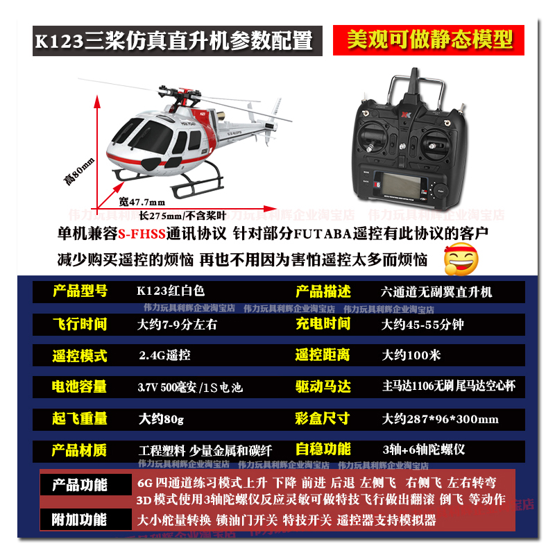 XK Wei Forces K123 Six-channel Brushless Remote Control Aircraft Professional Electric Helicopter Simulation Machine Boy Stunt Toy