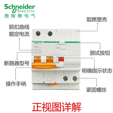 Schneider E9 series circuit breaker EA9R earth leakage protection breaker 2P 6-63A air switch
