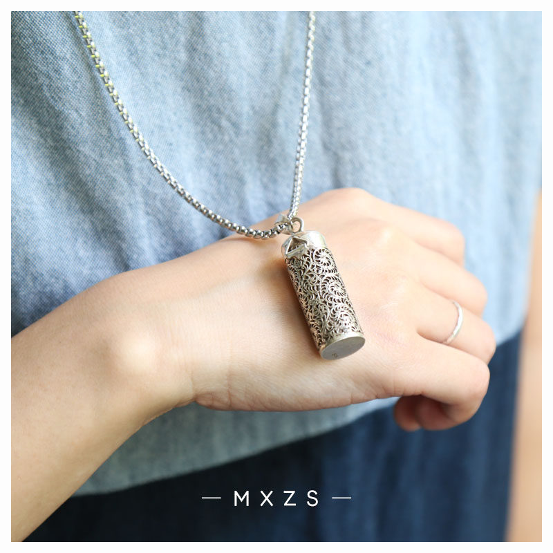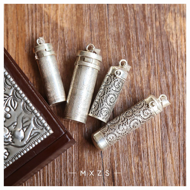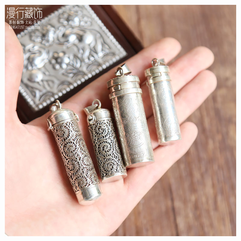 Nepal Handmade S925 Pure Silver Ornament Gau Box Pendant Men Pendant Pendant Fur Coat Chain Diy Accessories