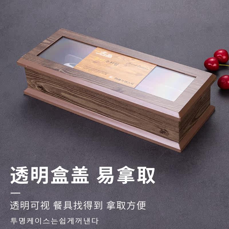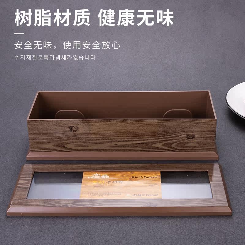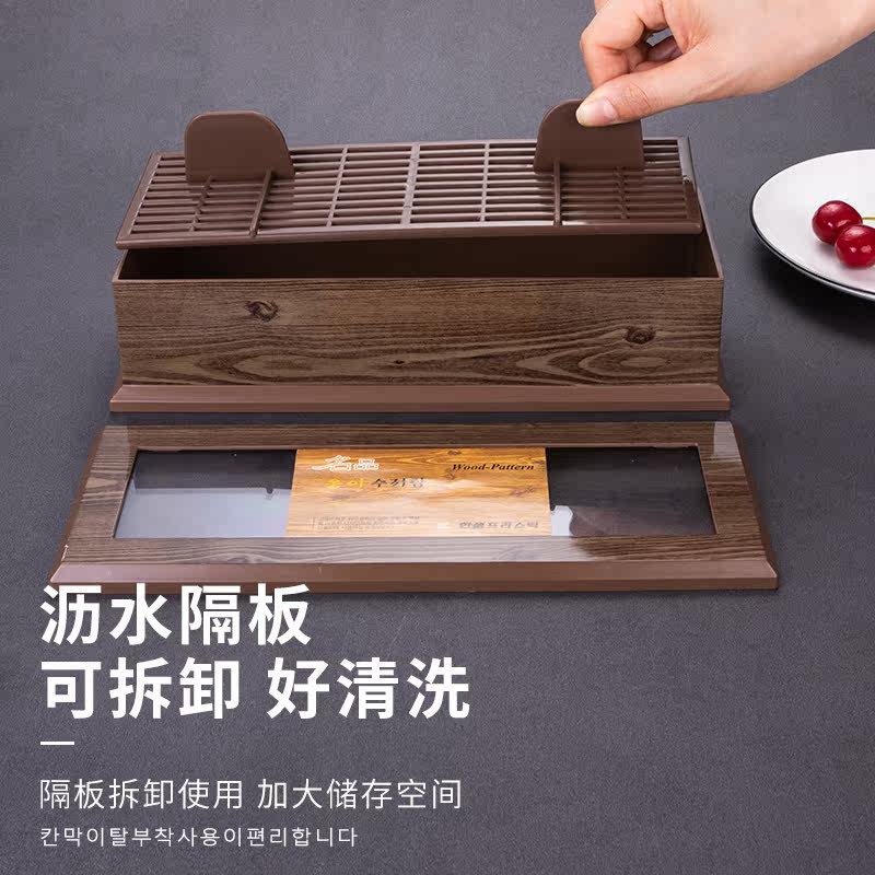 South Korea Imported Chopstick Spoon Cartridge Lid Dust Resistant Drain Household Imitation Wood Grain Plastic Containing Box Han Dining Shop Plastic Box