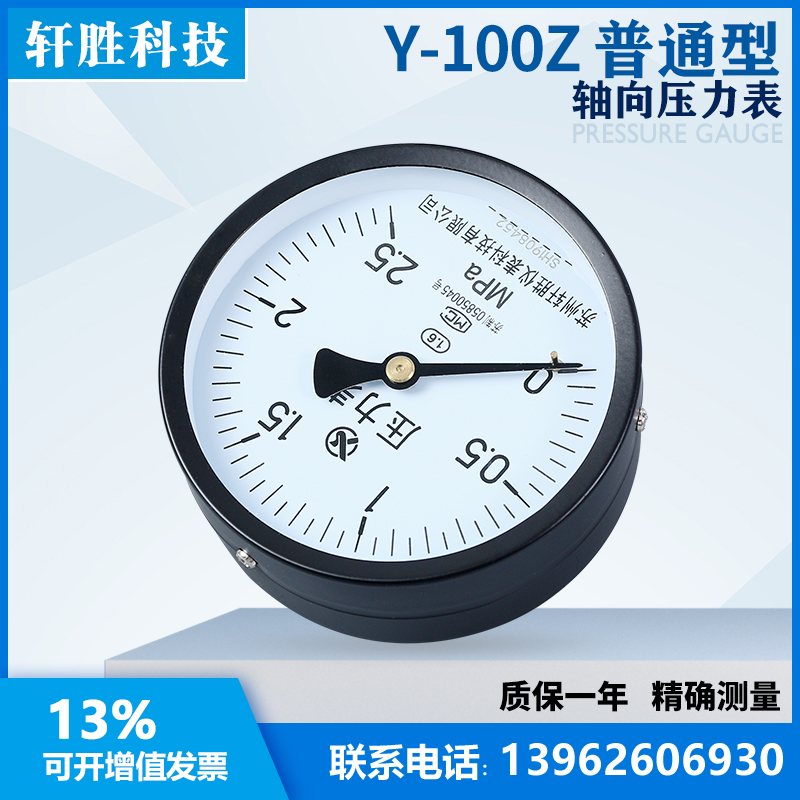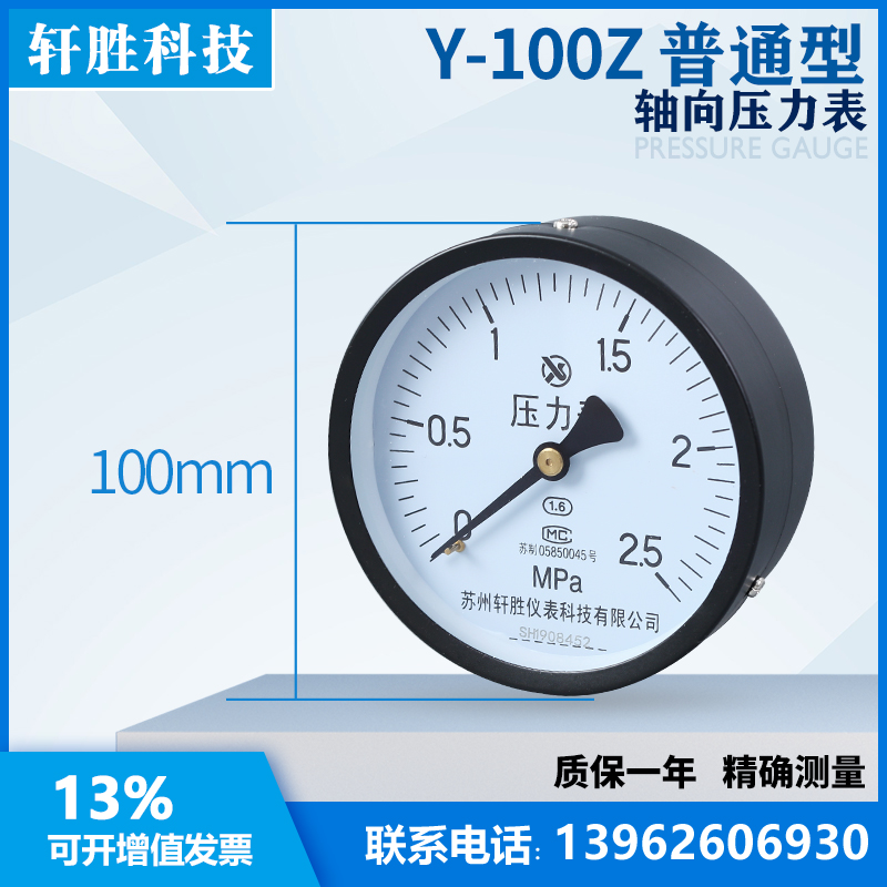 Suzhou Xuansheng Y100Z 2 5MPa axial pressure gauge gas tank pressure gauge axial spring tube pressure gauge