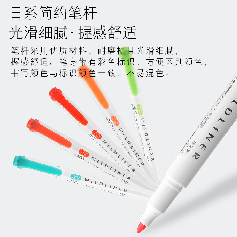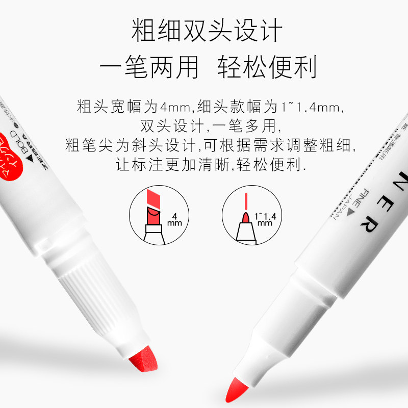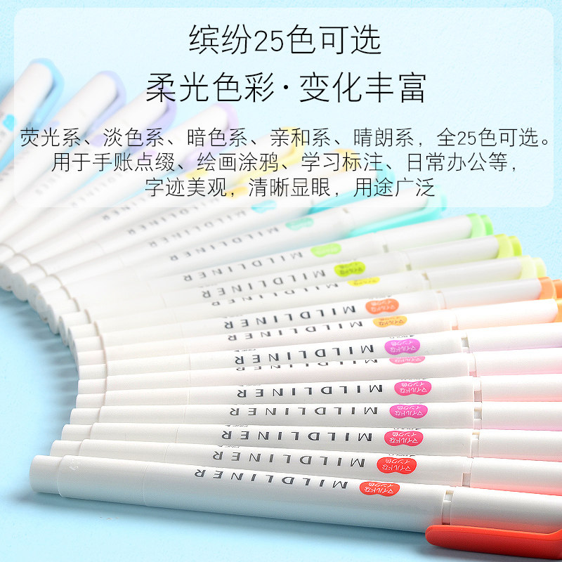 Official Japan imported ZEBRA zebra fluorescent WKT7 hand account light color double-headed fluorescent marker pen Students use marker stationery to take notes Color pen rough stroke key candy color