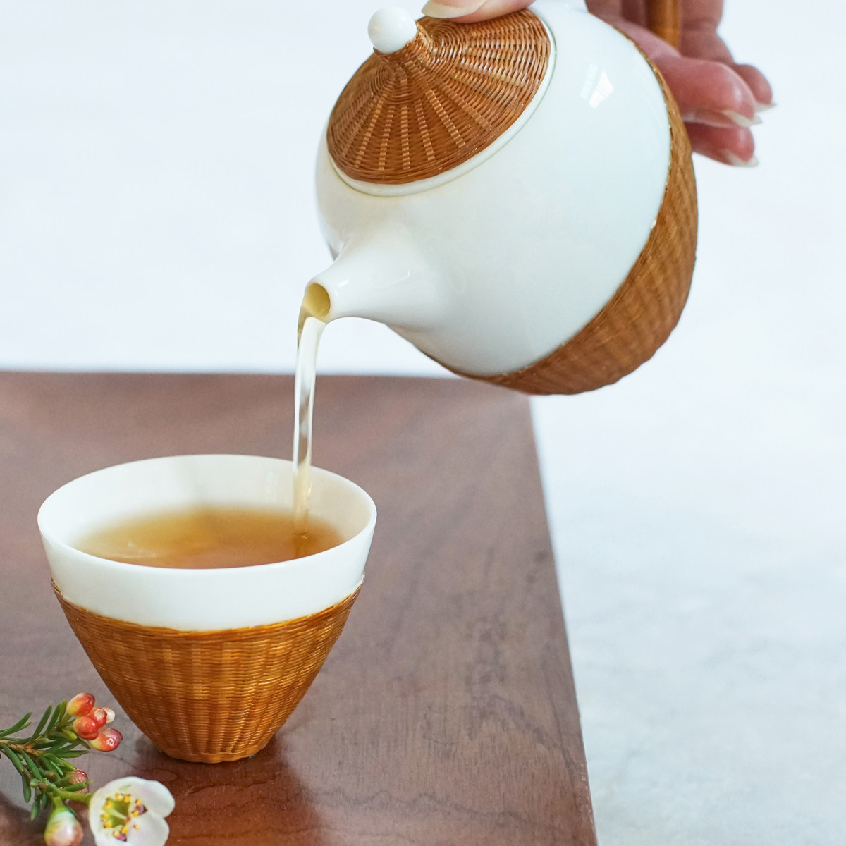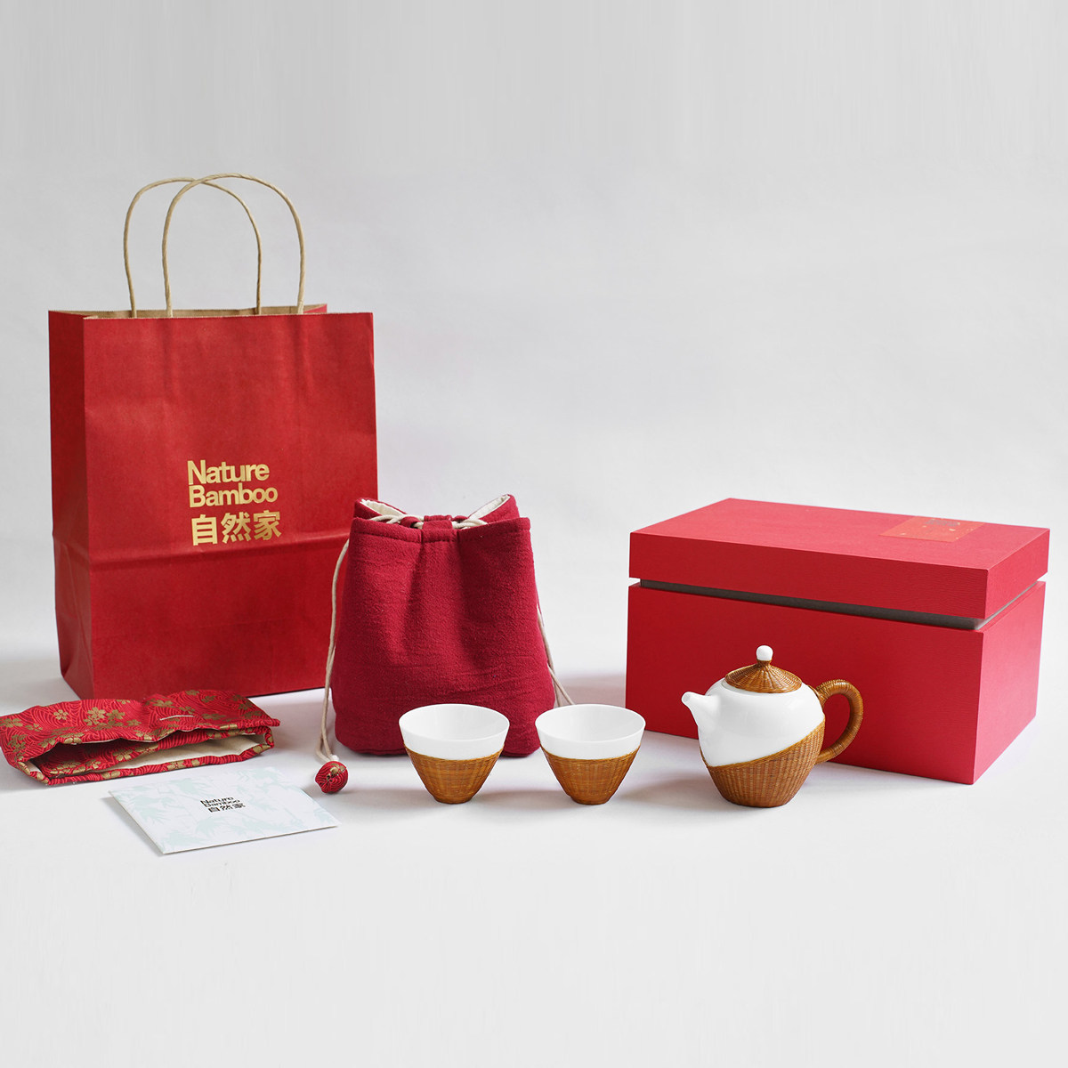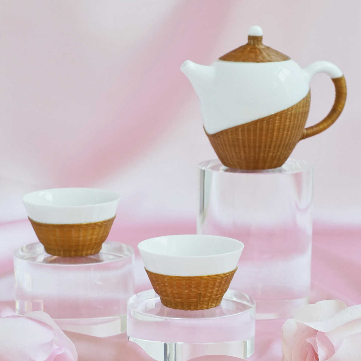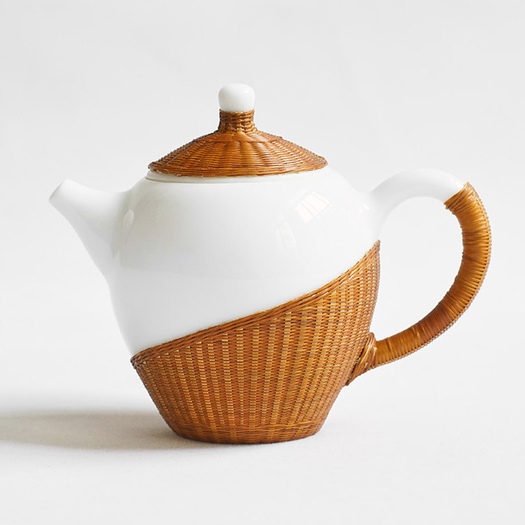 Natural home porcelain tire bamboo woven bamboo thread porcelain beauty pot Teapot Gongfu Tea cup Tea set Business gift gift