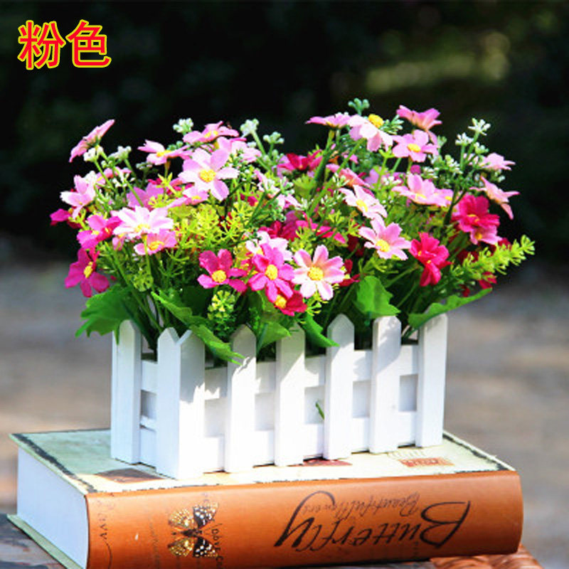 Living Room Bedroom Plastic Fence Simulation Dry Flower Bouquet Flower Set Decor Ornaments Home Fake Flower Pot Plant