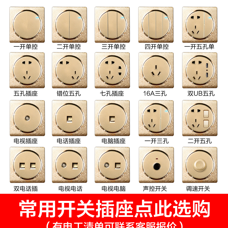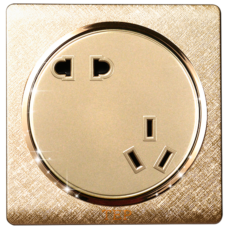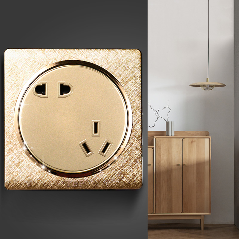 Home Champagne Gold Switch Socket Panel 86 Type Wall Power Wall 5 Holes 23 Inserts Concealed Fit Five Holes