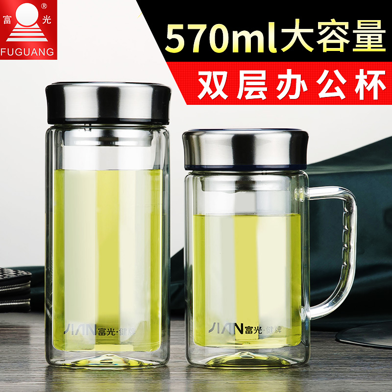 Fuguang Glass Cup Water Glass Large Capacity Double Layer Office Cup With Handle Men Business Home With Lid Filter Cup