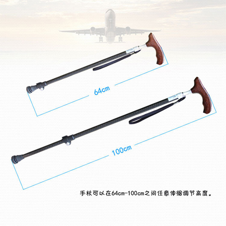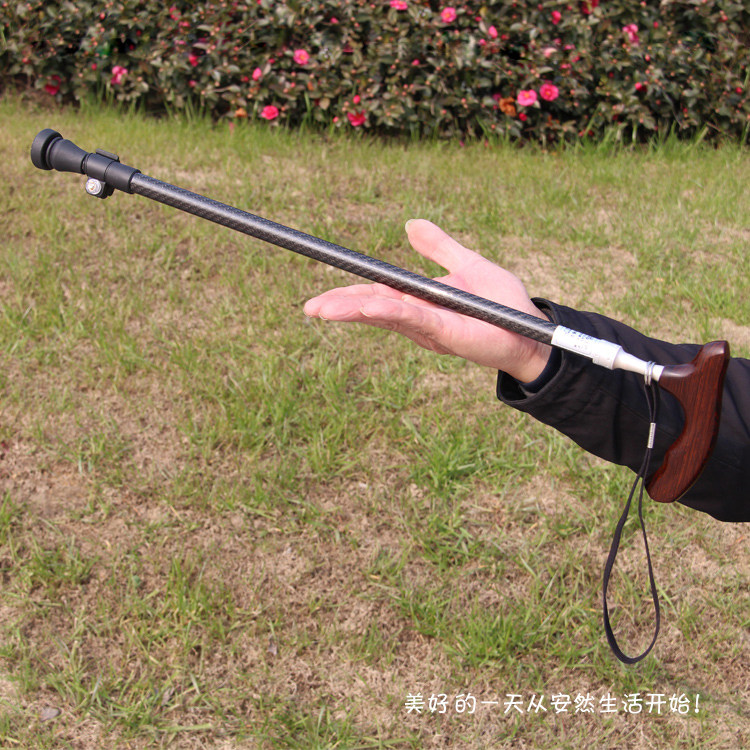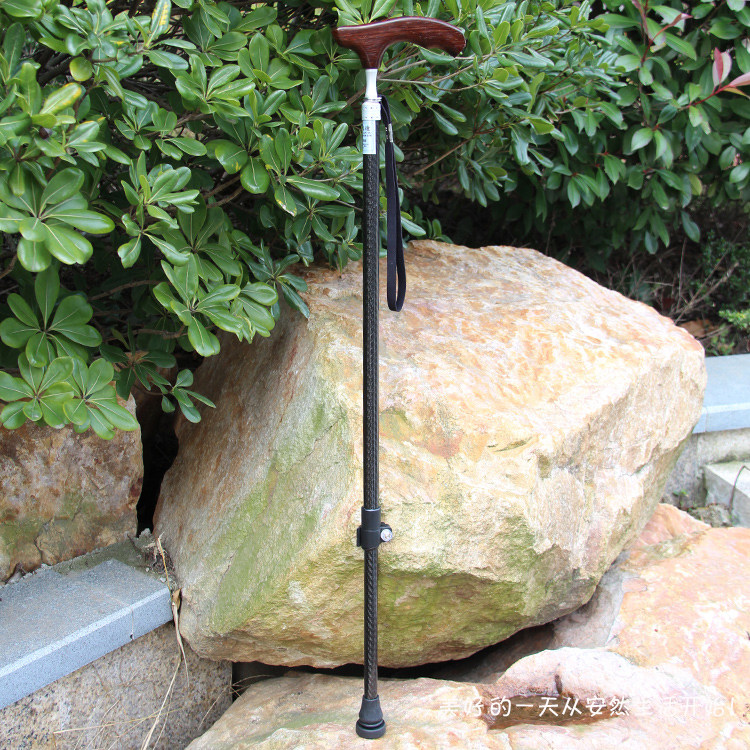High-grade carbon fiber crutches for the elderly with solid wood handles for the elderly ultra-light non-slip crutches telescopic carbon cane