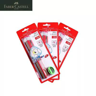 Germany Huibojia triangle pencil 10 sets of primary school students write not easy to break 2B pencil student test answer card special pen 1-3 Grade with rubber to send pencil sharpener children's school supplies