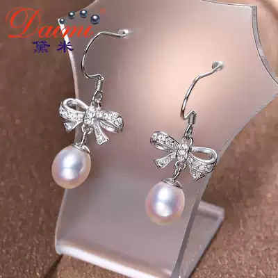 Demi Miaodie 6-7mm white strong light water drop shape freshwater pearl earrings S925 silver bow temperament earrings