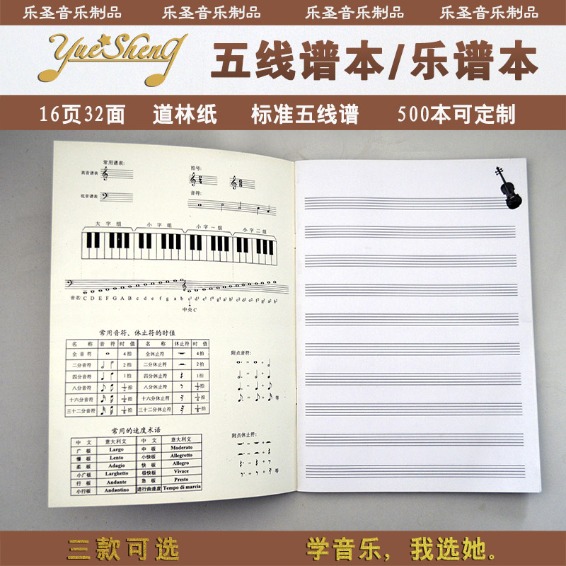 Five-line book music lesson record book five-line book music book 16 pages 32 sides with music theory knowledge