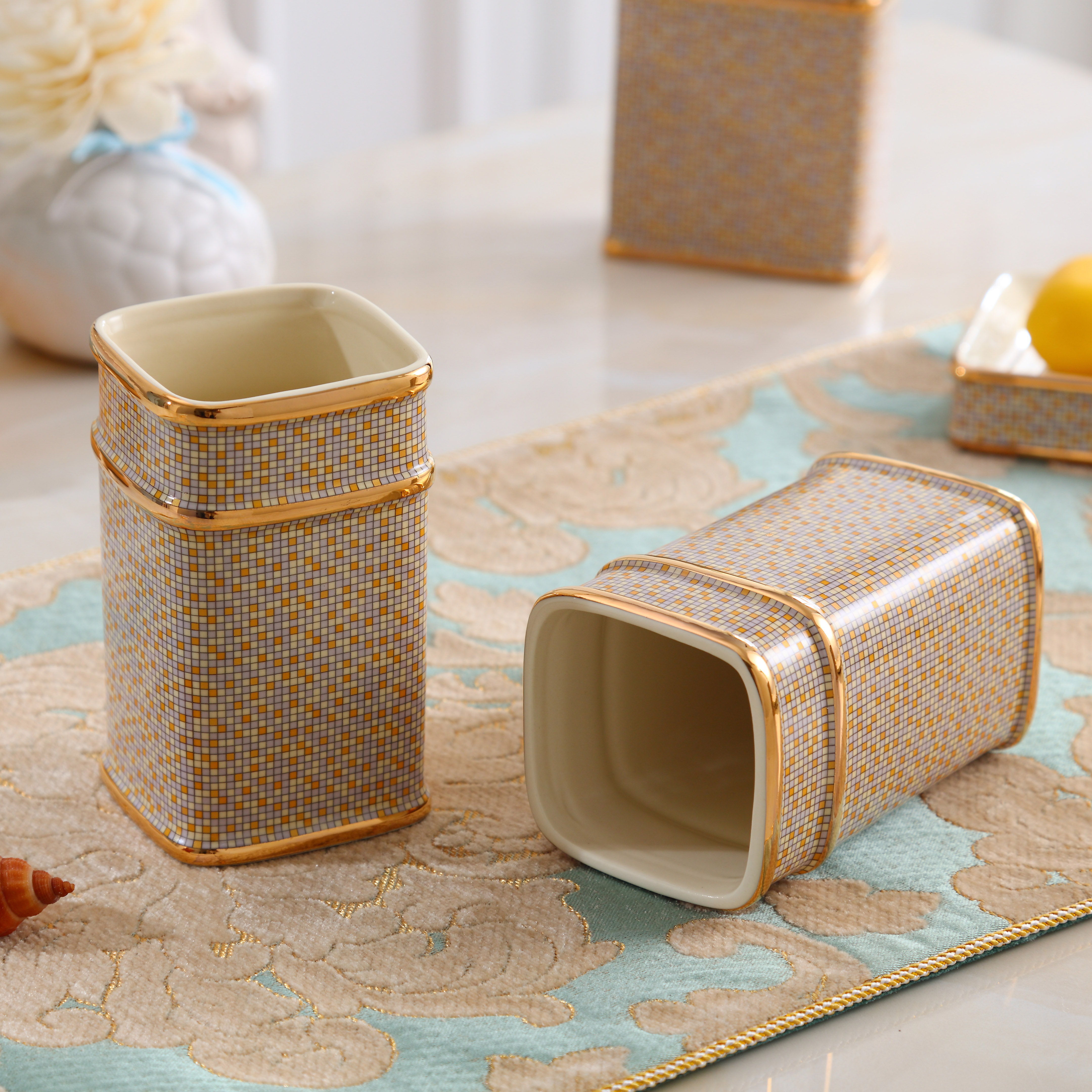 European-style ceramic bathroom Five-piece with tray Six-piece set Wash set mouthwash cup Powder room bathroom supplies creative