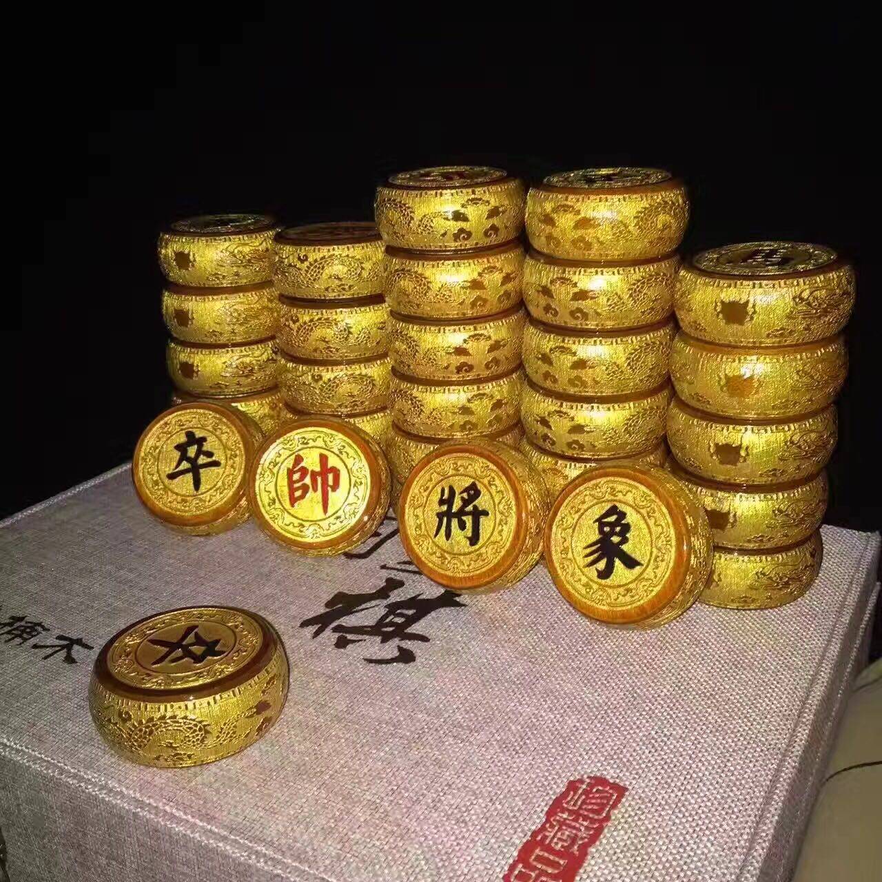 New Products Golden Silk Nanmu China Chess Small Leaf Zhen Nan Kowloon Wufu Chess Suit Upscale Home Business Gift
