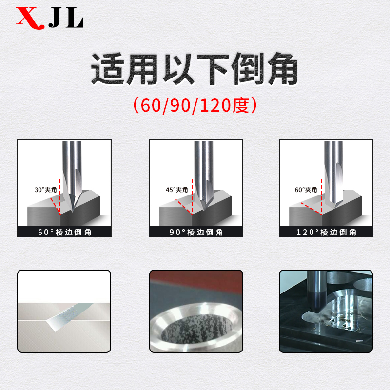 XJL tungsten steel chamfering knife 45deg aluminum three-edged straight groove inner hole alloy chamfering knife 60 degrees 90 degrees 120 degrees