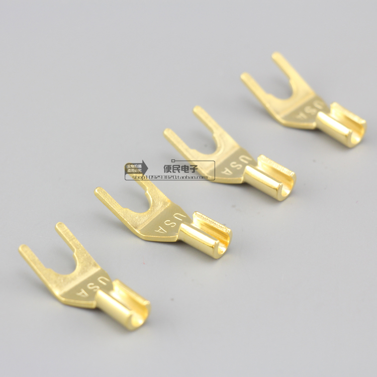 Imported usa high quality gold-plated audio Y plug pure copper horn wiring banana head Y plug speaker plug