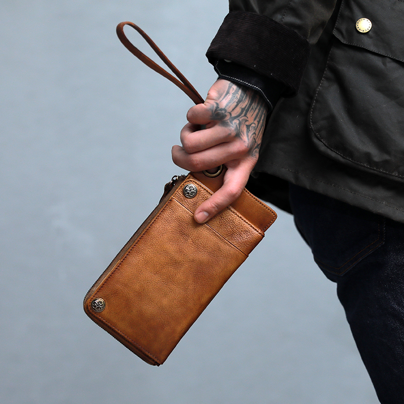 Handmade Retro Cow Leather Long-Wallet Japan-Japan Card Bag Men's Long Version Large Capacity Lakup Cell Phone Bag Men's Handbags
