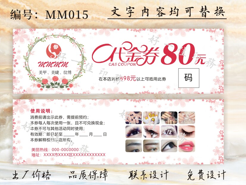 Han Style Semi-permanent Set Makeup Tattoo Brow Beauty Substitute Gold Voucher Custom Coupon Print Design Cash Volume Print Card