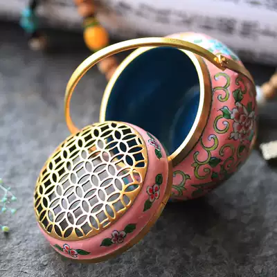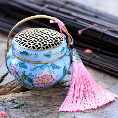 Goose yellow (Butterfly Love ring fragrance base tassel PEACH RED) ring incense base tassel gourd enamel hand stove (Style remarks) upgraded hand warm six-piece gift box cloth bag (Green