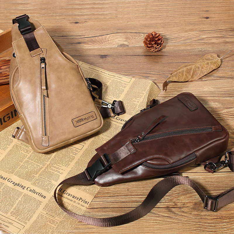 Headlayer Bull Leather Chest Bag Men Genuine Leather Han Version Slanted Satchel Movement Youth Outdoor Leisure Single Shoulder Retro Wind Purse