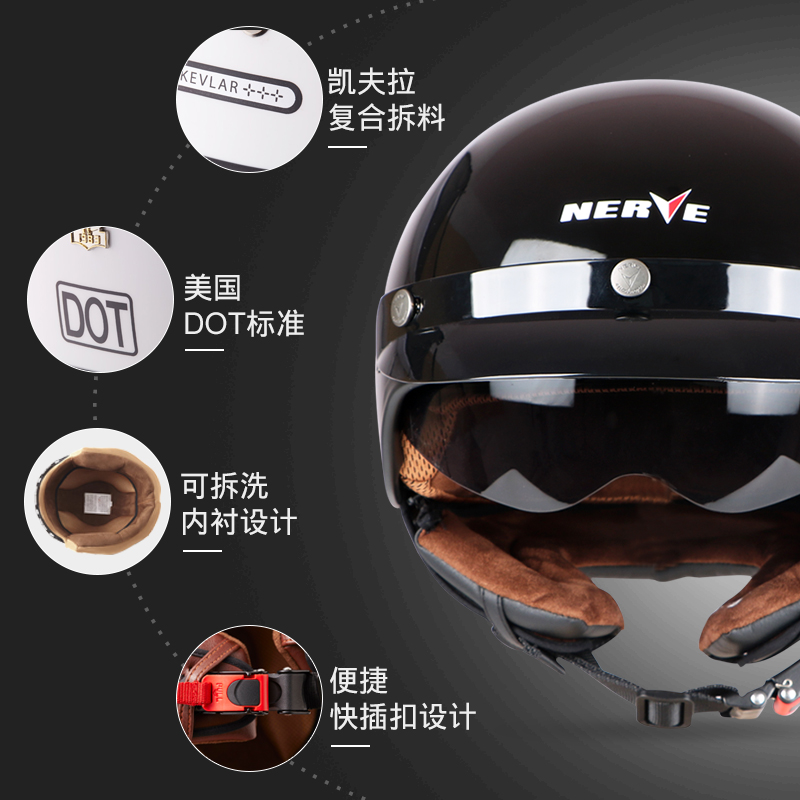 NERVE Neve Kevlar Fiber motorcycle helmet Half helmet Summer Double lens Electric car half duplex Men and women