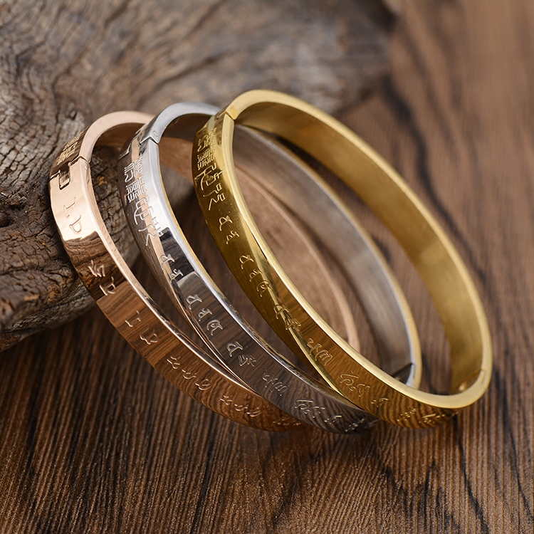 Lenght Mantra Bracelet Women's Hand Ring Titanium Steel Engraving Six Words True opening Heart Tempered By Personality Wrist Handmade Ornament