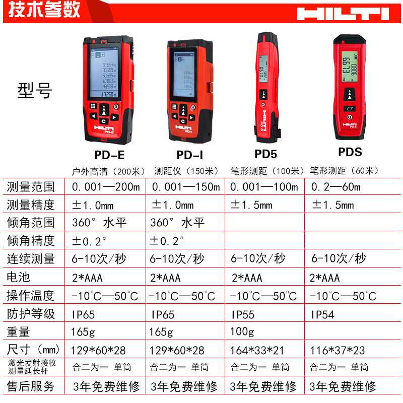 Hilti 100m PD5 (Original standard) Hilti 150m PD-I (Original Standard) Hilti 200m PD-E (Original Standard) Hilti 60m P