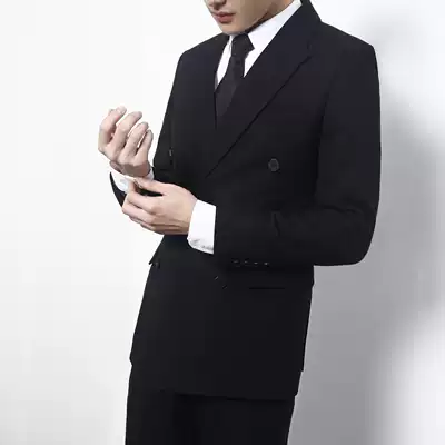 Korean fashion double-breasted suit suit men British slim casual professional dress suit men's singles