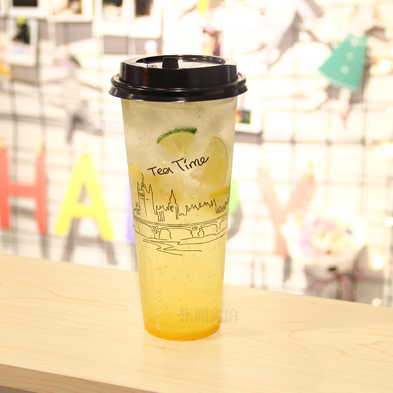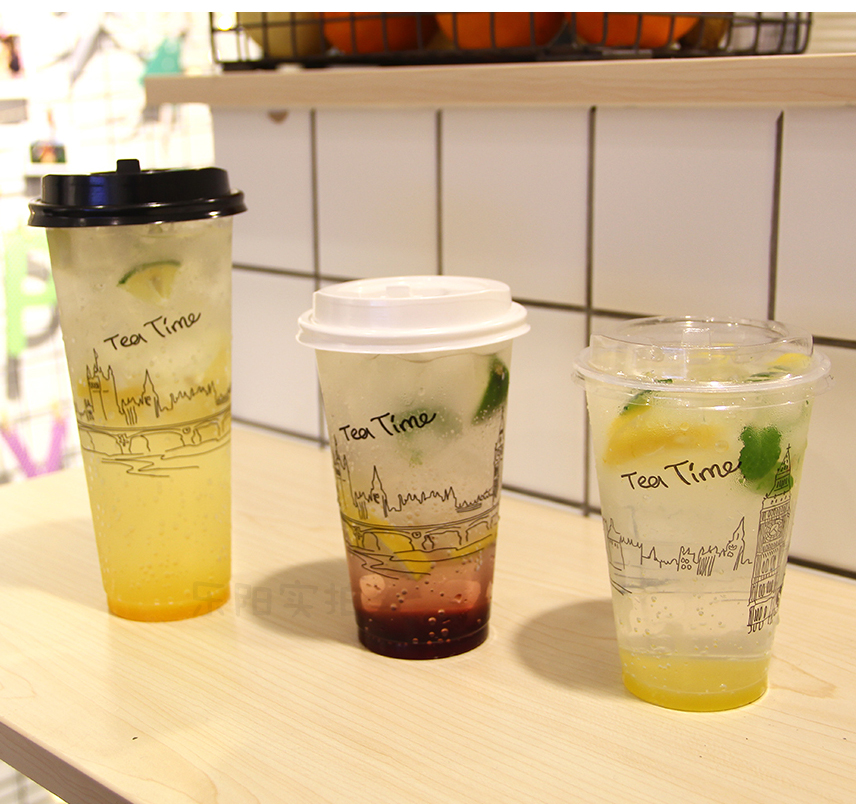 90-caliber high-penetration thickened disposable plastic milk tea cup subway 700ml500 fruit juice cold beverage packaging cup