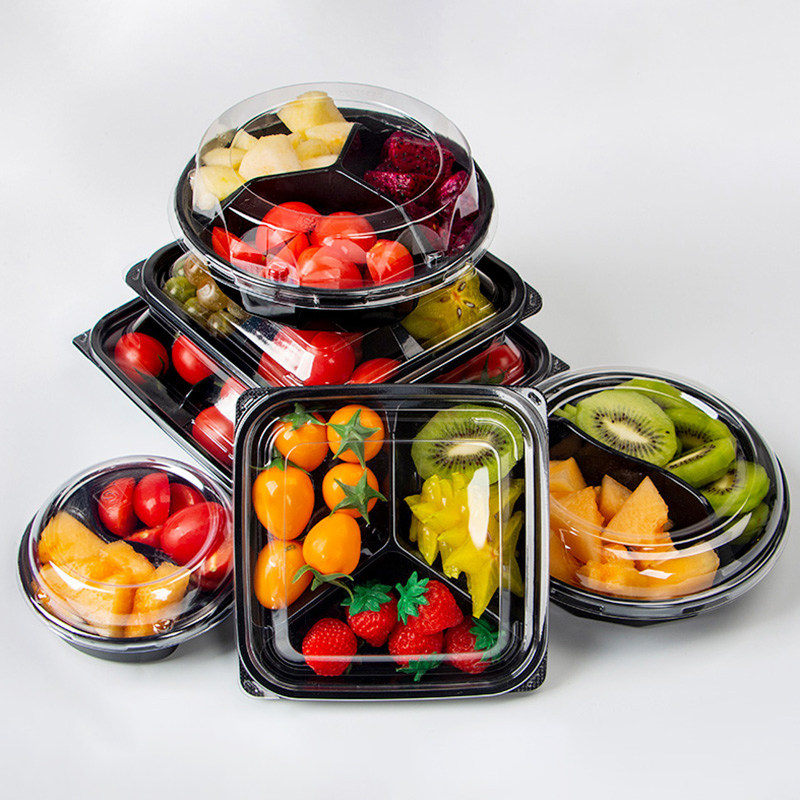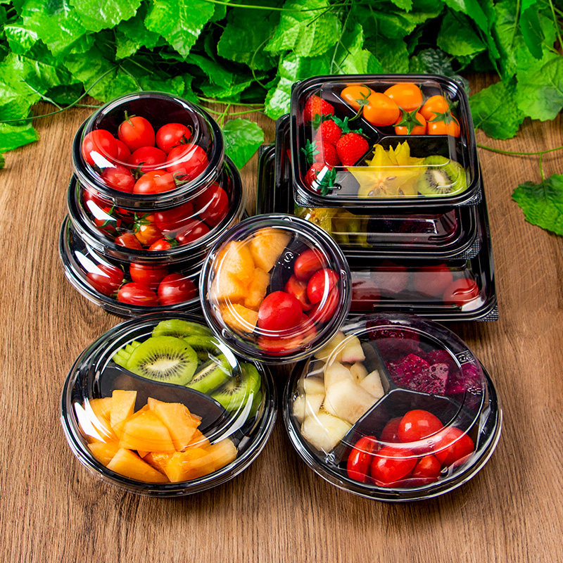 Disposable Fruit Box Double Parquet Fruit Cut Box Mesh Red High End Six Parquet Transparent Round Single Lattice Tray Water Fruit Bailing Packaging Box