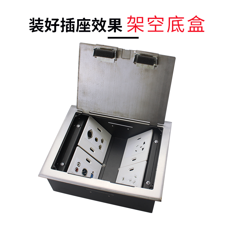 Stainless steel hidden open type four-position 86 type five-hole network weak current ground socket multimedia multi-function ground socket