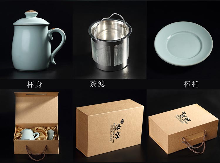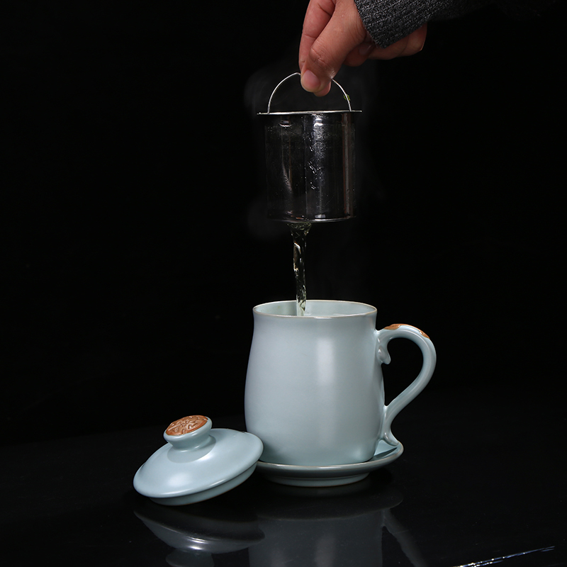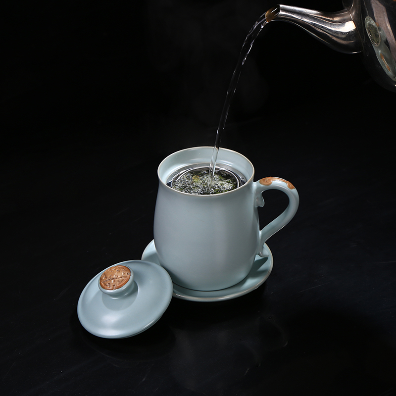 Ru kiln tea cup office tea set with lid ceramic ice cracked personal cup four-piece set filter open master single cup