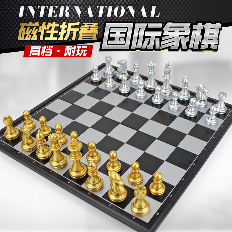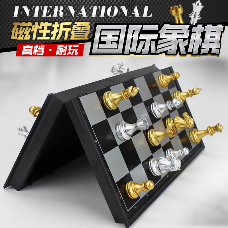 High-grade chess magnetic portable folding board Gold and silver game pieces Children's training game special chess