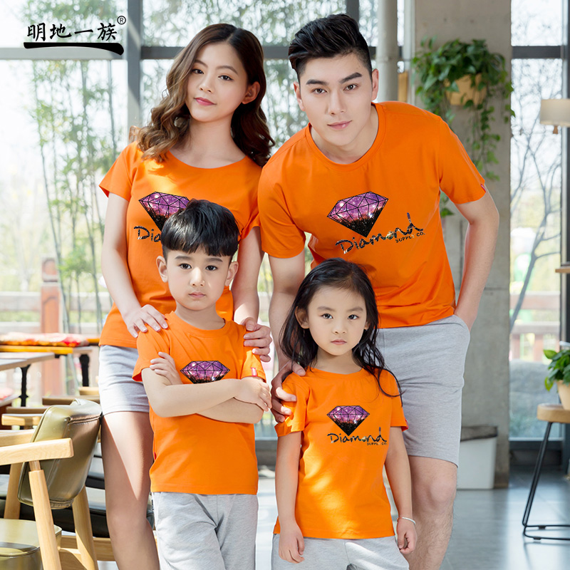 Red pro dress a four-mouthed female summer dress 2022 new and different short sleeve t-shirt three-mouth mother-son dress
