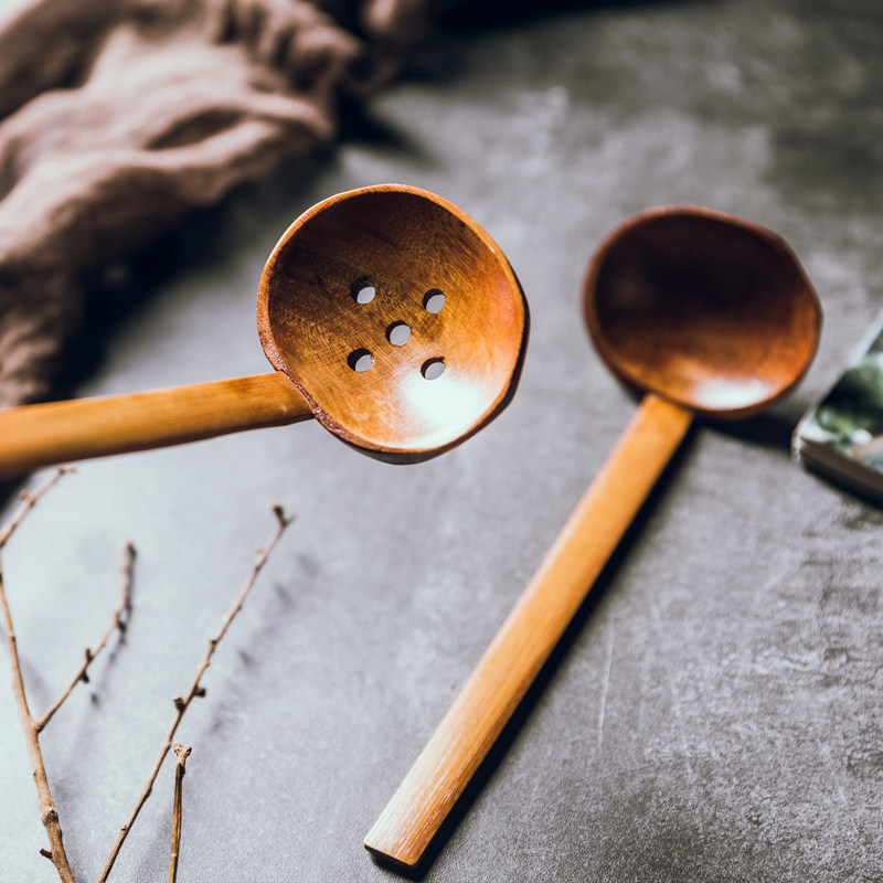 Creative Japanese-style wooden long-handled turtle shell ramen spoon Large soup spoon Hot pot colander paint-free flavor thousand ramen spoon porridge spoon