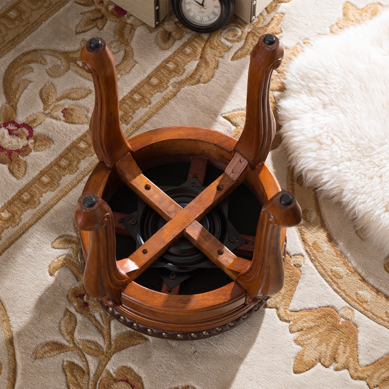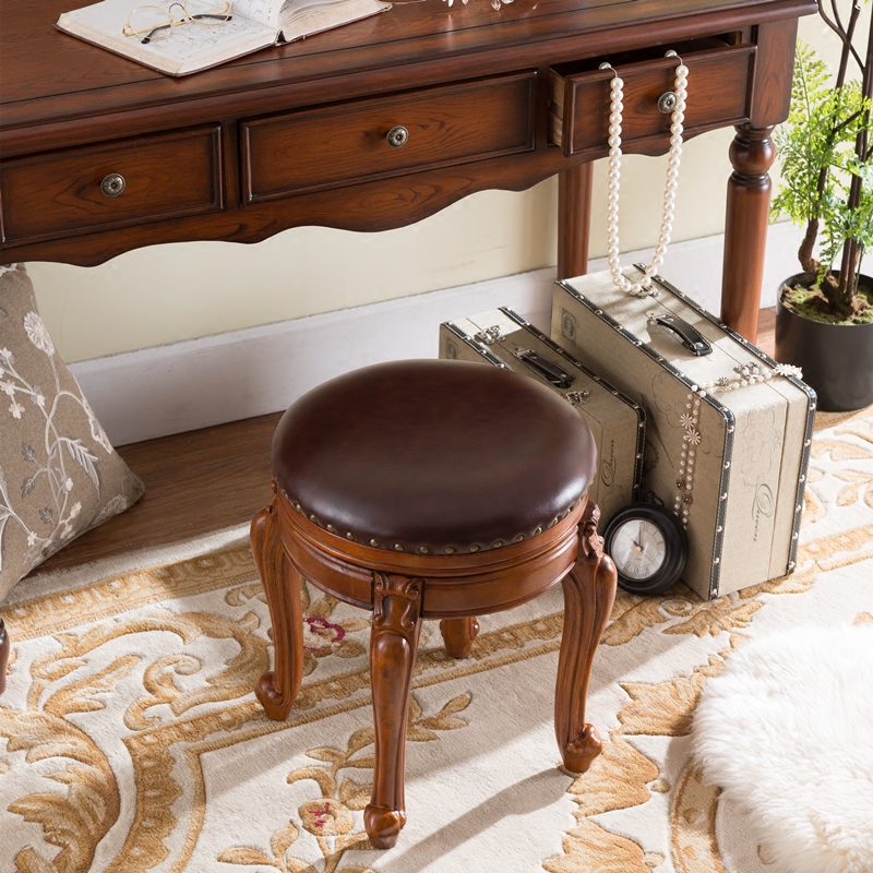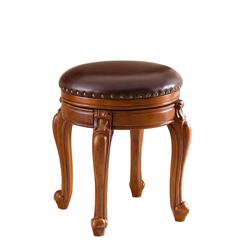 Solid Wood Makeup Stool Dining Stool American Short Stool American Round Stool Can Swivel Small Leather Round Stool Bedroom Makeup Stool Makeup Chair