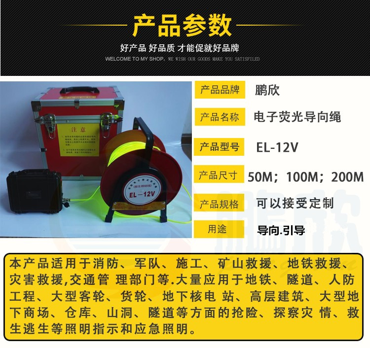 Fire Lifesaving Lighting Line Rechargeable Luminous Rope Search Guided electronic fluorescent points to rope 50 m 100 m 200