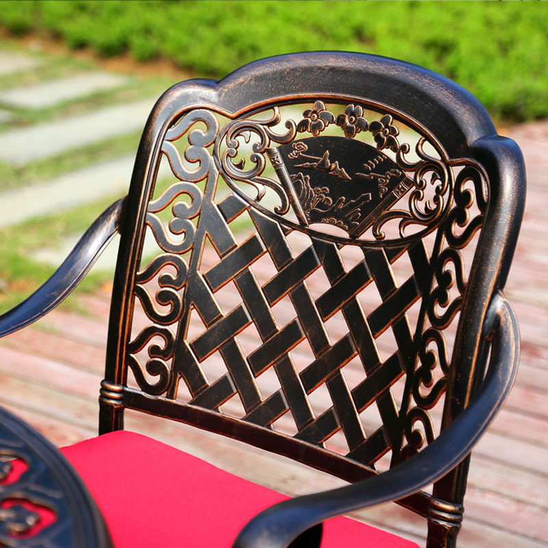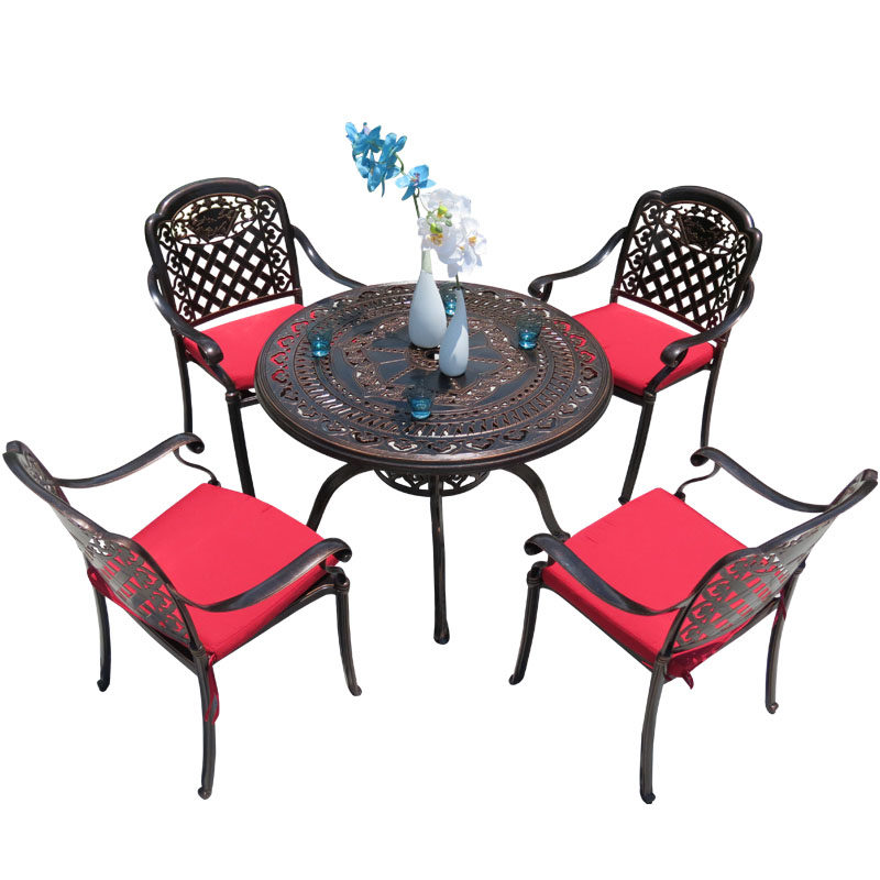 One table and four chairs (bronze tables and chairs, khaki pads) One table and four chairs (bronze tables and chairs, green pads) One table and four chairs (bronze tables and chairs, coffee brown pads) One table and four chairs (bronze tables and chairs
