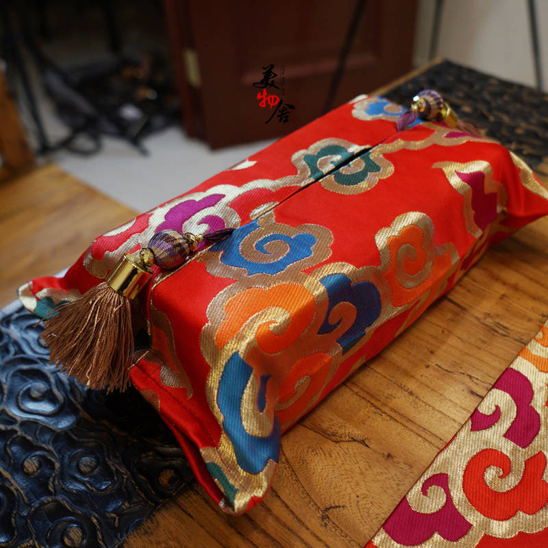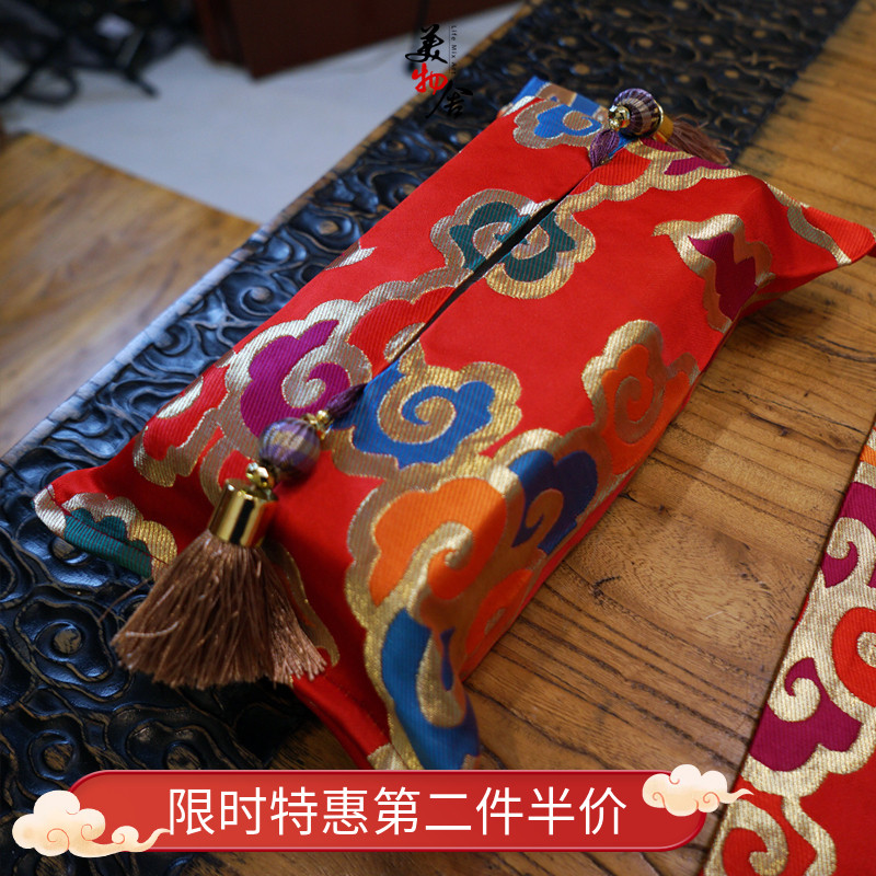 Red Xiangyun drawsty box set Chinese fabric paper towel set towel set car with drawer box set 3 pieces