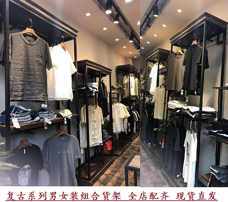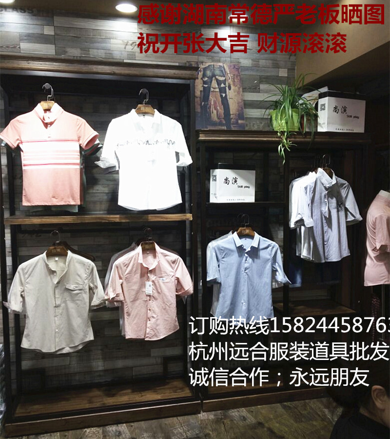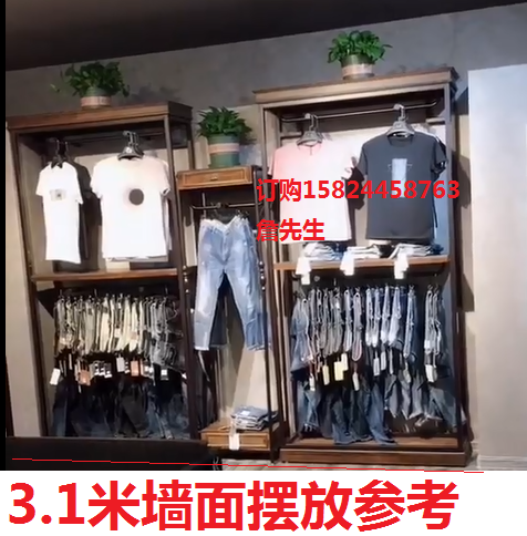 Casual Men's Clothing Store Shelf Floor Fashion Iron Art Leaning Against Wall Shelf Clothing Store Display Rack Combo Display Cabinet Hung Hanger
