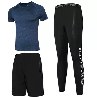Gym three-piece Men's quick-drying short-sleeved tights running suit summer training clothes spring and autumn fitness clothes