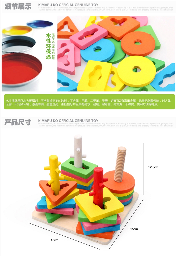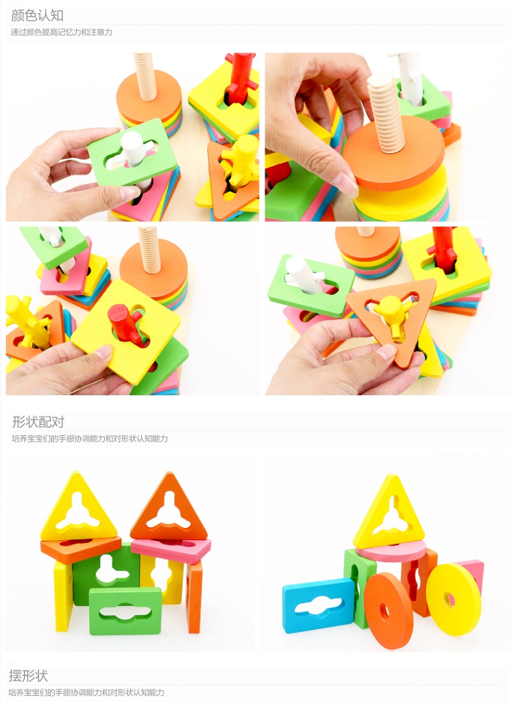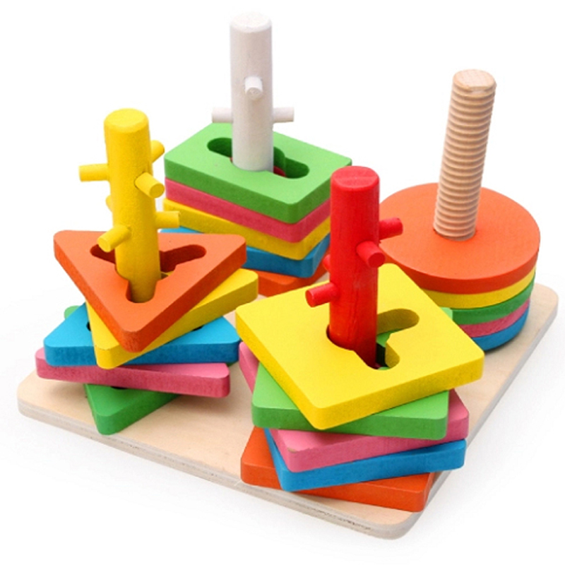 Wood Pellets Children Four Sets Of Columns Wooden Matchmaking Building Blocks Geometric Shapes Baby Building Blocks Enlightenment Puzzle Early Toys