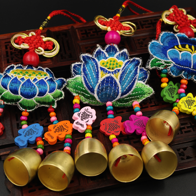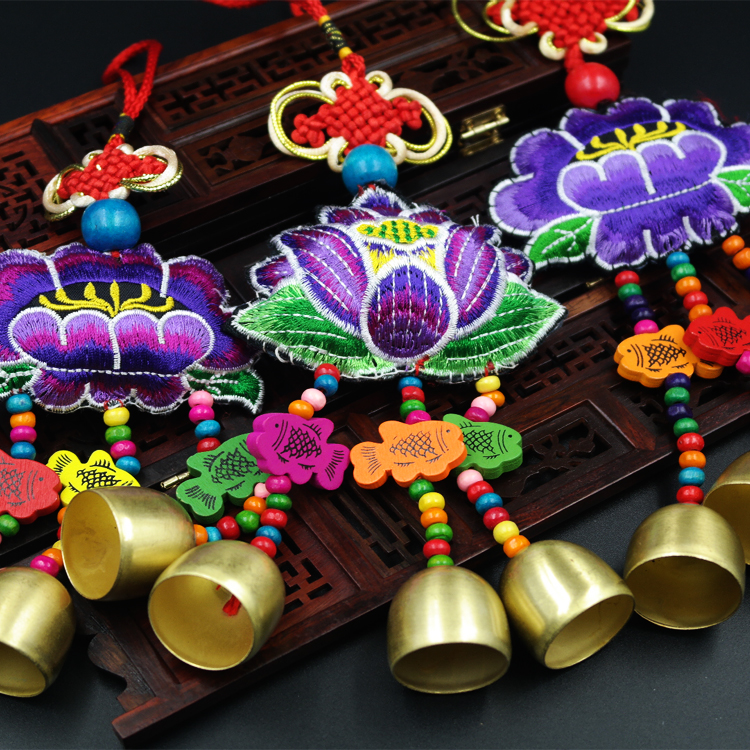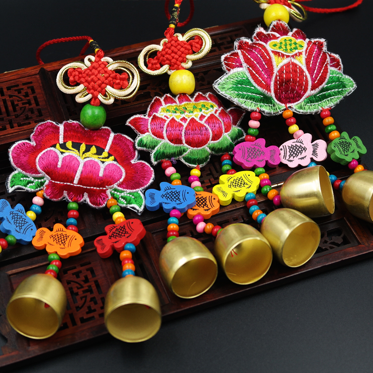 Yunnan Characteristics Ethnic Wind Embroidery Wind Bells Feng Shui Lijiang Pint Metal Pure Copper Door Decoration Hung Decoration Wind Bells Birthday Present