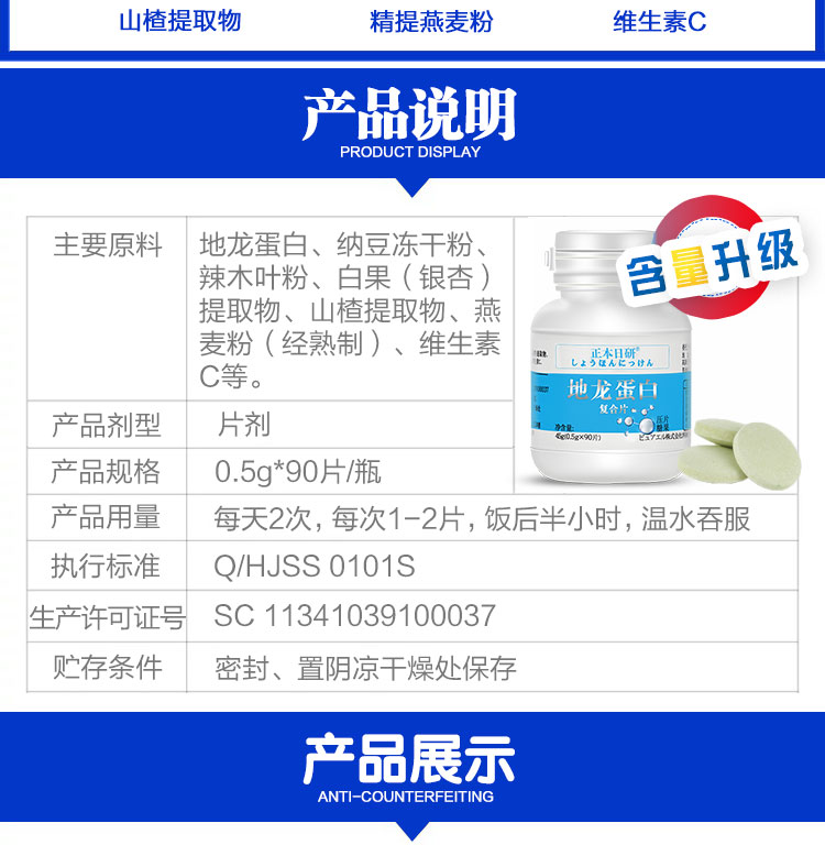 Ground Dragon protein Natto freeze-dried powder Moringa leaf extract Ginkgo biloba Extract Hawthorn Extract Oat flour (cooked)Vitamin C Sorbitol