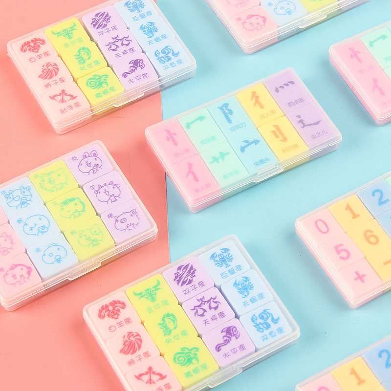 Cute eraser student creative novel 12 zodiac boxed eraser color combination eraser prize gift eraser clean eraser