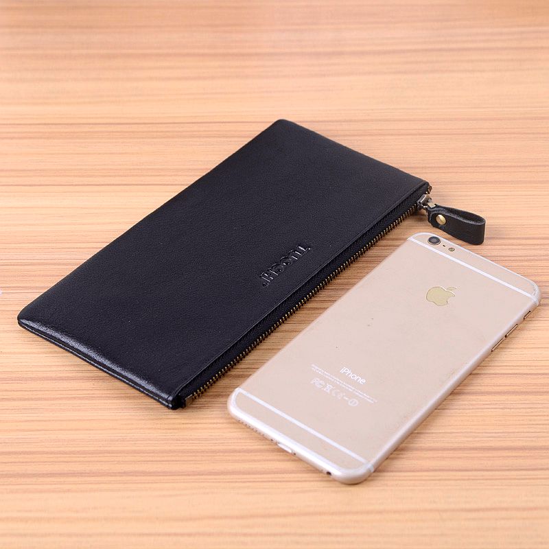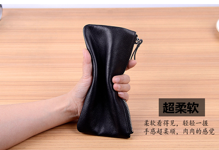 Men's wallet long leather leather soft leather ultra thin handbag female Japanese Korean version trend young cow leather handbag