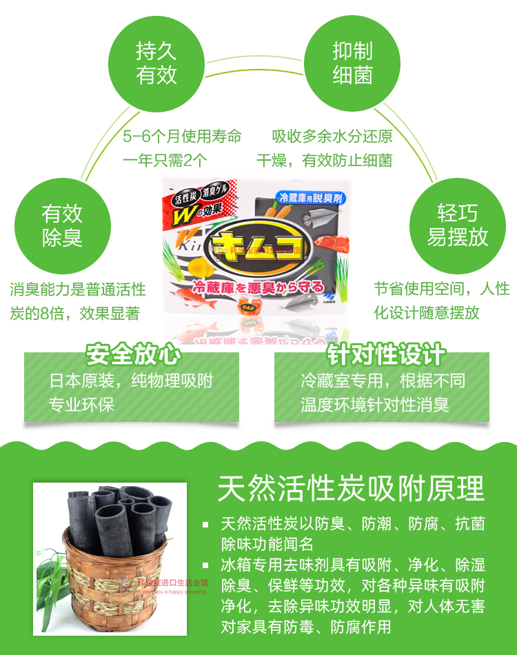Japan imported Kobayashi pharmaceutical activated carbon odor refrigerator refrigerator special deodorant 8 times deodorant