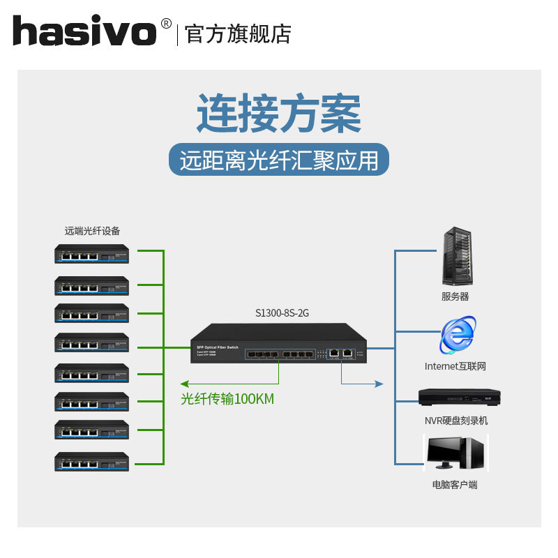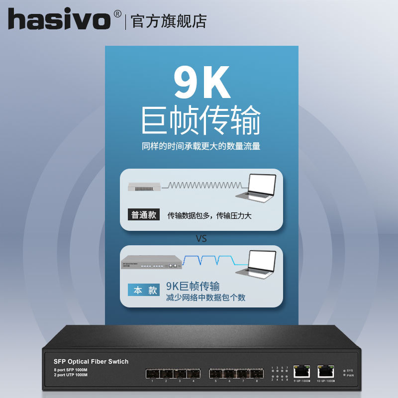 hasivo full Gigabit 8 optical 2 electric fiber switch 8 Gigabit SFP optical port F1100-8S-2G